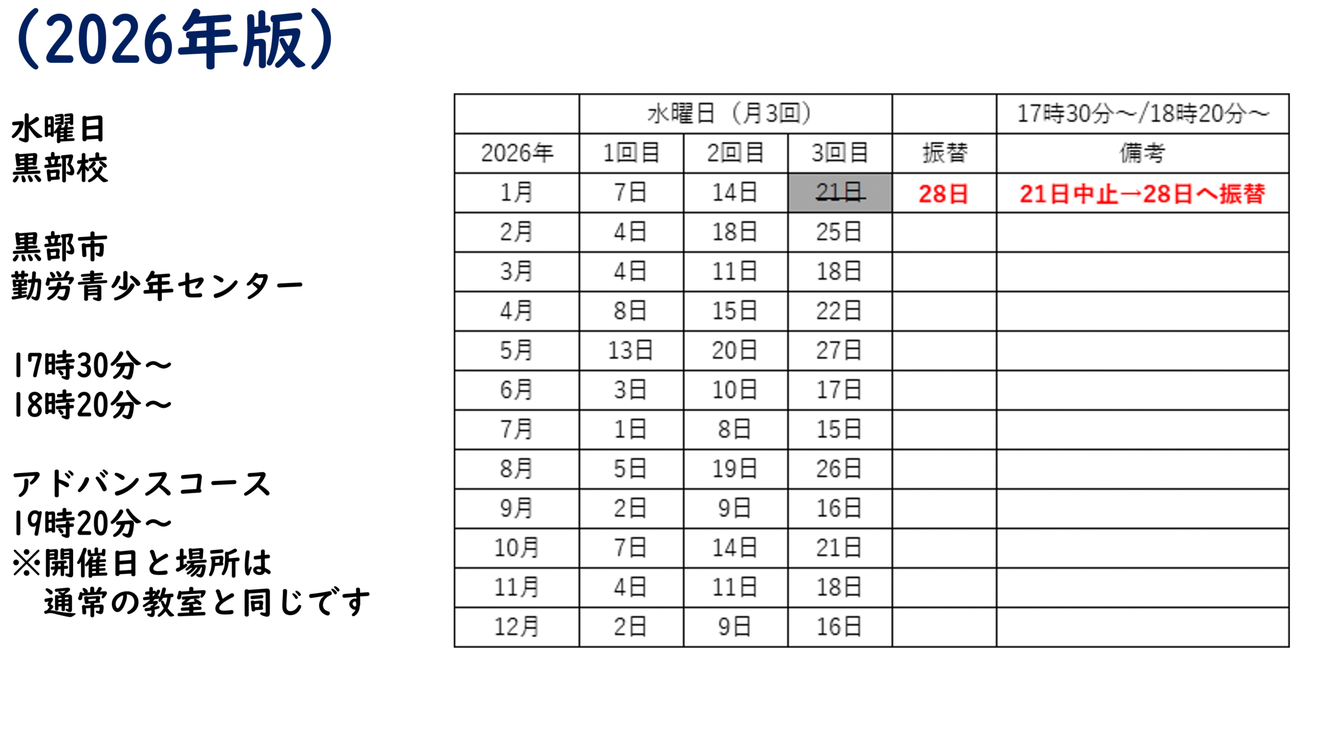 場所:滑川農村環境改善センター(早月中の横) 【クリックでgoogleMAPへ】