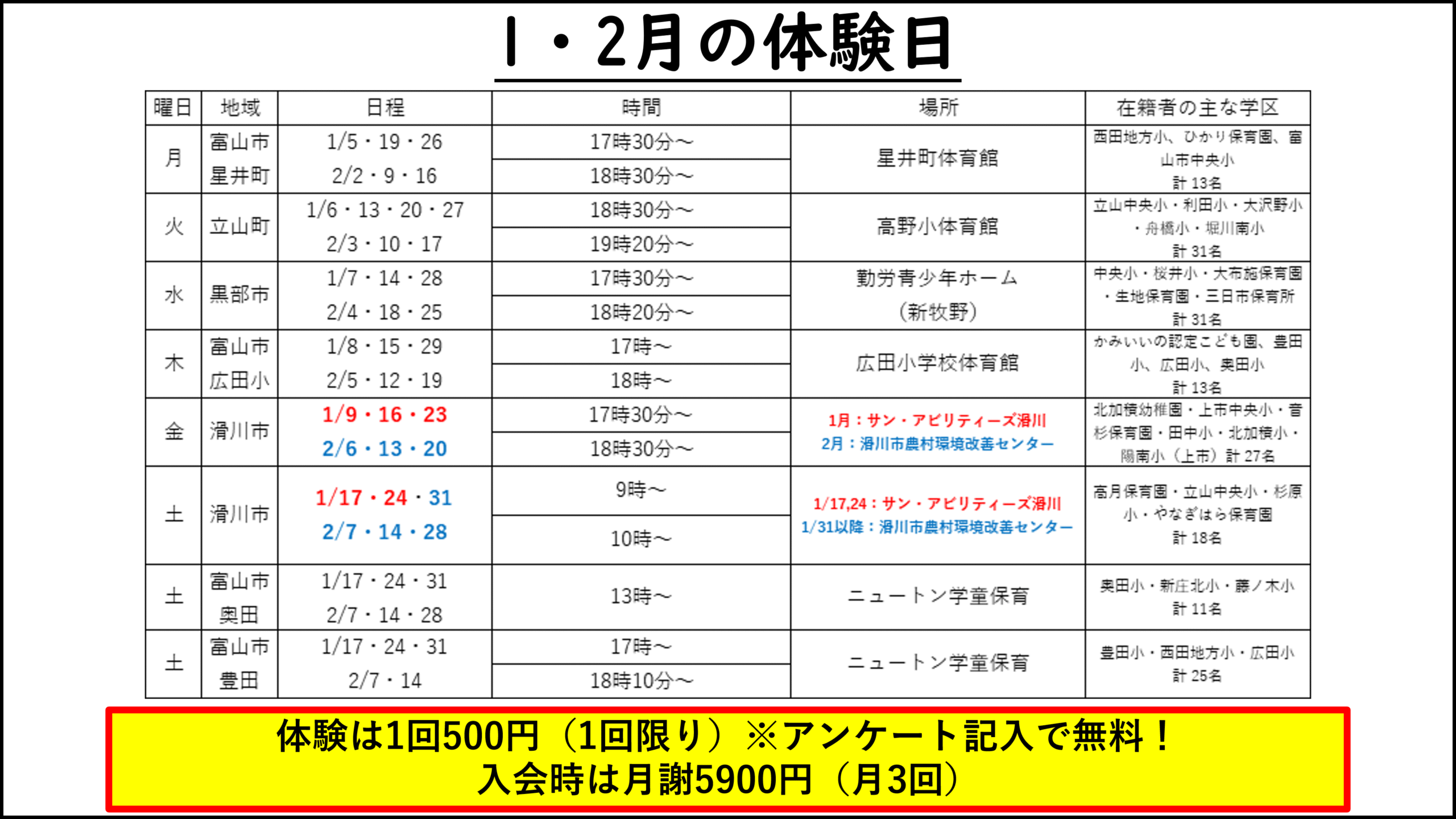 1・2月のかけっこ教室!! 体験会!