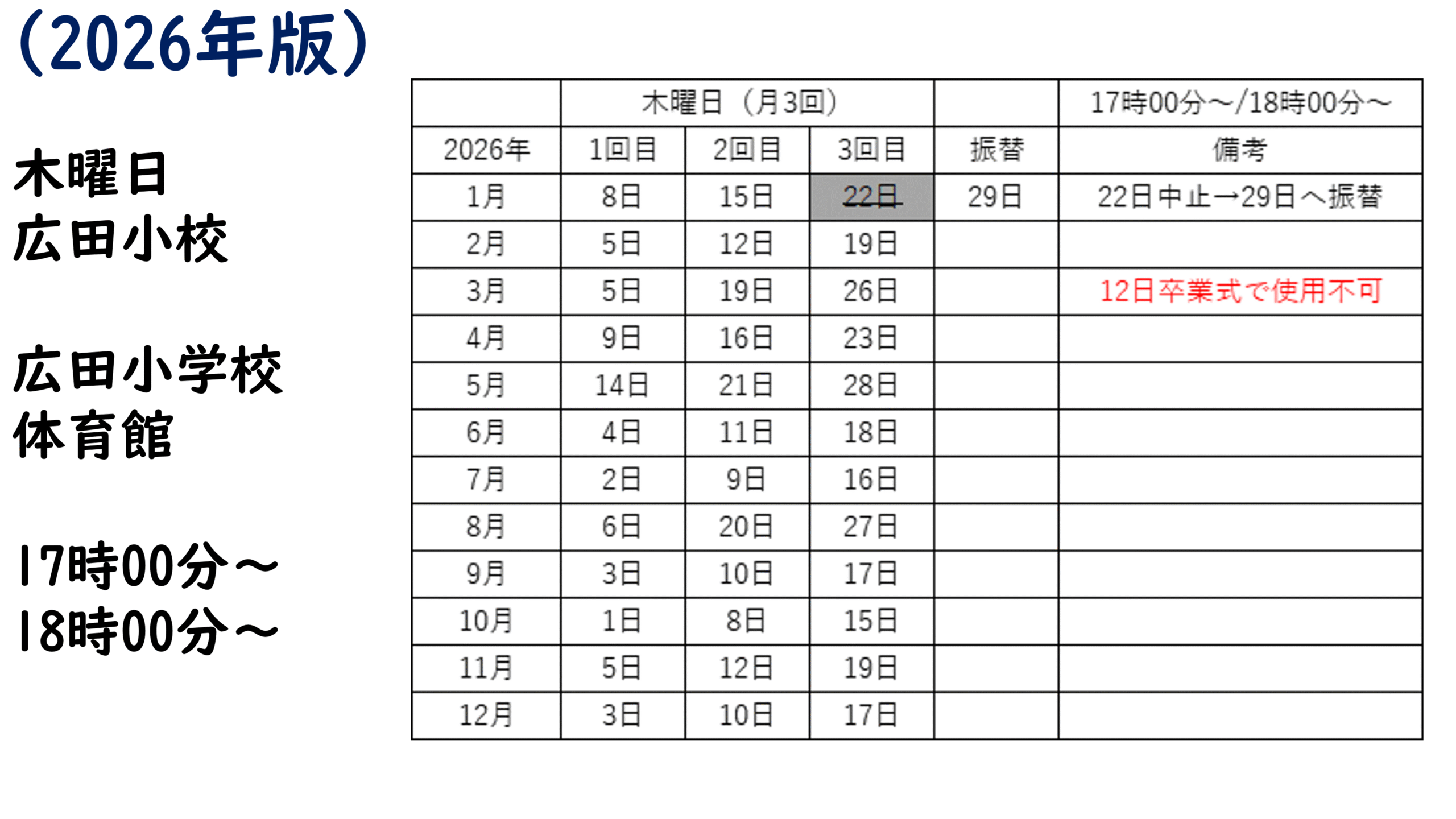 場所 富山市立広田小学校体育館(クリックでGoogleMAPへ)